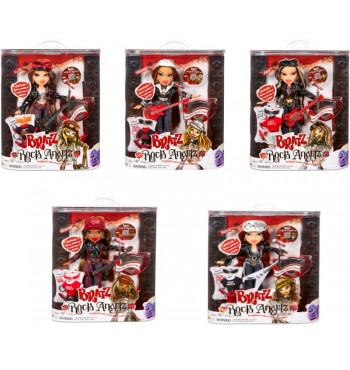 The popular, iconic BRATZ brand turns 20 years old and celebrates it! The rock girl band Bratz Rock Angelz returns 20 years after the first appearance on stage! Collect all 5 girls (Chloe, Yasmin, Jade, Sasha, Roxxi) who come in a rock mood, each with its own musical instrument, microphone and stand, ready to take the stage for the ultimate concert! Each pack contains:1 fashion doll Bratz Rock Angelz 20 Years Special Edition height 30 cm high, 2 sets of clothes (1 for the stage and 1 simple), leather jacket, hat, guitar, shoes, jewelry, mobile phone, sunglasses, nail polish, hair brush, stand with microphone, poster.