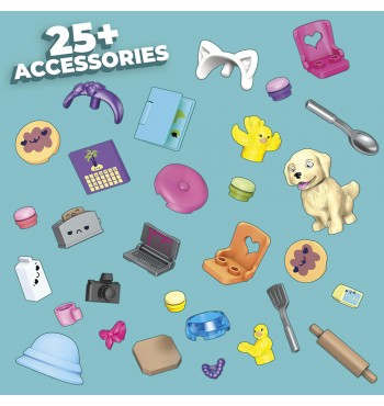 Discover a whole world of possibilities in the Malibu House. Let your imagination run wild as you build your dream home and decorate each room with furniture and other accessories. Get ready for a pajama party with 2 small Barbie™ dolls and adorable dog. Go to the studio to make fun videos and discover that you can become anything you dream of by playing with Barbie™. With this set, kids can build easily and imagine many stories in each building step. Ideal for children aged 5 and over.
